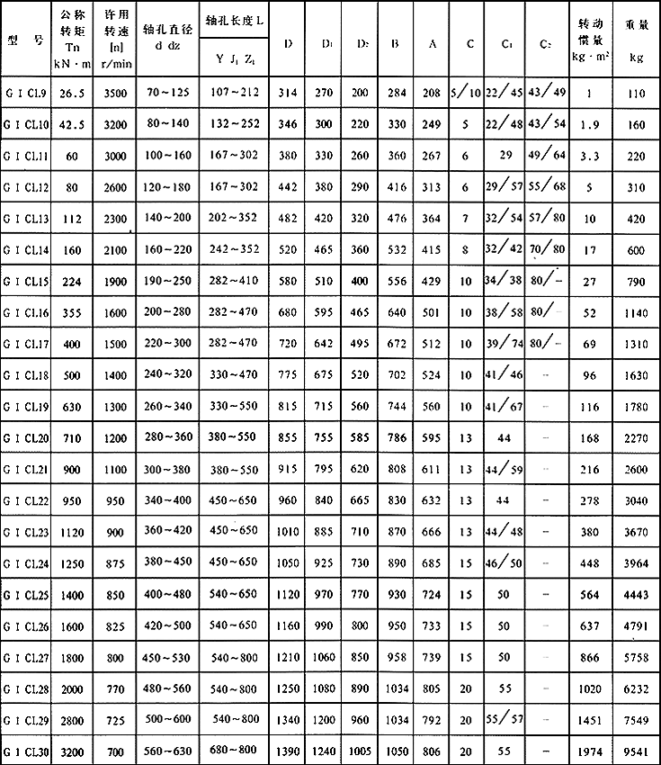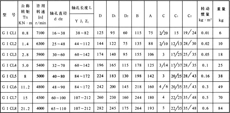 GICL型 聯(lián)軸器參數(shù)與尺寸(mm)